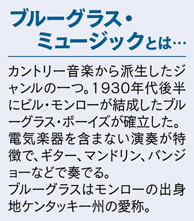 2人は9月下旬に渡米。ノースカロライナ州で行われた26日の表彰式に出席した。受賞のスピーチでは「ブルーグラスは国境のない言葉。この人生が終わって天国に行っても、歌い続けます」と音楽にかける思いをユーモアを交えて語り、会場の喝采を浴びた。