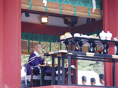 鶴岡八幡宮と奈良・東大寺合同の「東日本大震災物故者慰霊と被災地復興への祈り」が10月23日、鶴岡八幡宮舞殿で行われた。