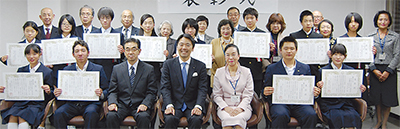 第33回「全国中学生人権作文コンテスト鎌倉市審査会」の表彰式が11月14日、市役所で開かれた。今年は市内の国公立、私立中学から569作品が寄せられ、14作品に賞が贈られた。