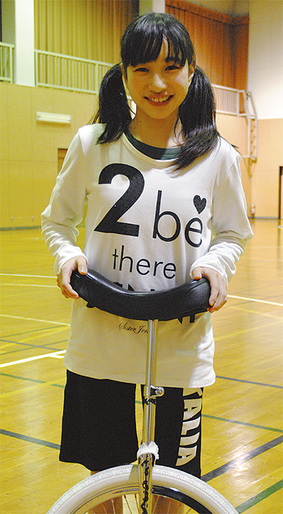橋本さんは142cmと小柄ながら、回転ジャンプ技「トルネード」で高さが出せることが武器。はつらつとした躍動感ある演技が持ち味だ。不安定な一輪車を手足のように操り、ダイナミックな技を決める姿に圧倒される。指導する同協会の加藤幸夫会長は「リズム感が良く、表現力は小学生のレベルを超えている。練習好きな負けず嫌い」と話す。柔軟性が課題だというが「ライバルに負けたくない」と、どんなに練習で疲れていても1日30分のストレッチは欠かさないという。