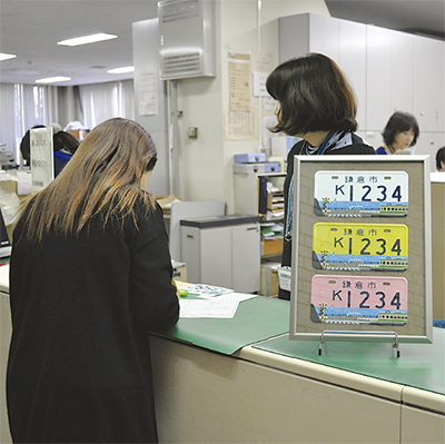 鎌倉市の「ご当地ナンバープレート」は、公募91作品の中から市民による一般投票を経て選ばれたもので、鎌倉高校前駅周辺の風景がモチーフとなっている。1月6日に「K・・・1」から順次発行が始まることから、いち早くプレートを手にしようと前日夕方から並ぶ「強者」も出た。開庁直後の窓口には50人以上が並び、初日で257枚が発行された。
