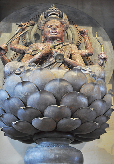 彫刻家で東京藝術大学大学院教授の籔内佐斗司さんは、平城遷都1300年祭公式キャラクター「せんとくん」を制作したことでも知られる。籔内さんは青蓮寺に「五輪塔童子像」を造立。関東大震災で被災以来、解体状態となっていた「愛染明王坐像」の修復を手がけ、同像は2011年に89年ぶりに還着を果たした。こうした縁から同寺が今回の出展に協力したという。