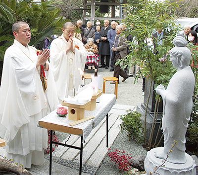 市内扇ガ谷の薬王寺にこのほど、「毒消(どっけ)し薬王菩薩」の像が完成し、3月21日に開眼法要が行われた。薬王菩薩像は江戸時代まで同寺の一角にあり、「さしのべさん」の名で民衆に親しまれていた。しかし明治期以降は行方不明となっており、像の再建は関係者の悲願だった。