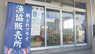 新鮮な魚や海藻類などが並ぶほか同販売所の目玉となるのが、その日に獲れた魚を揚げた「朝どれフライ」だ。同漁協の関係者は「身が柔らかくて刺身などには向かないが、フライにすると美味しい魚も多い。その日によって獲れる魚が違うので、思いがけない『出会い』を楽しんでもらいたい」と話す。店頭に並ぶ魚は毎日変わるが、今の季節はアジやイワシ、シラス、ジンダコなどが獲れるという。