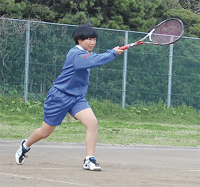 6年生で出場した全国大会では、ダブルスで5位、シングルスで3位に入賞。中学に進学してからも県中学校ソフトテニス選手権大会湘南ブロック大会で優勝するなど、目覚ましい活躍を見せ17歳以下の神奈川県強化指定選手にも選ばれている。今年の目標を尋ねると「全国大会でベスト8以上」ときっぱり。そのために熱のこもった練習を重ねている。