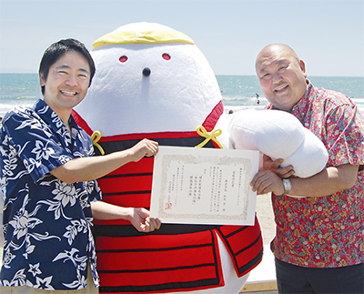 「鳩サブレー」で知られる(株)豊島屋(久保田陽彦社長)が昨年、命名権を取得した市内3海水浴場の愛称とロゴデザインが5月15日、発表された。愛称は公募で最も多かったことから、従来通り「材木座海水浴場」「由比ガ浜海水浴場」「腰越海水浴場」が使用されることが決まった。同社の久保田社長は「長く親しまれてきた名前に決定しうれしい」と話した。