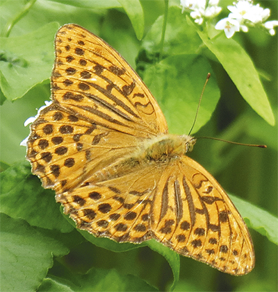 腰越地区に広がる広町緑地で9月21日、「ミドリヒョウモン」が確認された。同緑地で畑作などを行う「鎌倉広町の森市民の会」が月例観察で発見。市内では12年ぶりの観察報告だという。