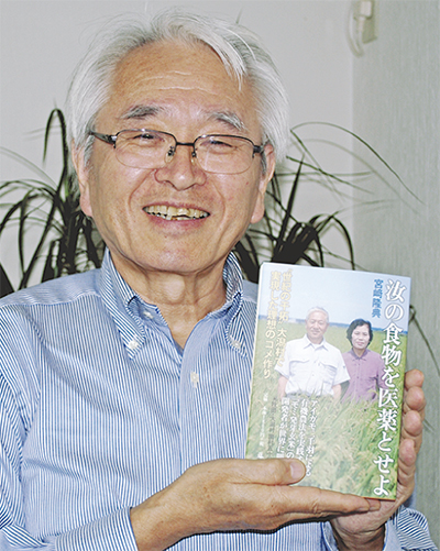 市内笛田在住の宮崎隆典さんがこのほど、秋田県大潟村の米農家・井手教義さんを取材した著書「汝の食物を医薬とせよ」を藤原書店から出版した。