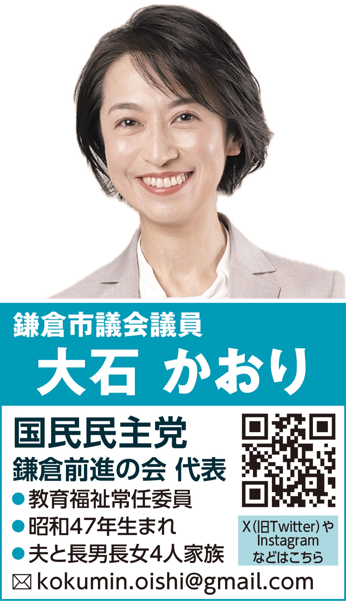 ○…名古屋市出身。幼稚園から大学まで「エスカレーター式」で上がり、卒業後は就職せずに「花嫁修業」に励んだ。その後お見合いを経て結婚し、3人の息子を出産。34歳の時、鎌倉に引っ越してきた。