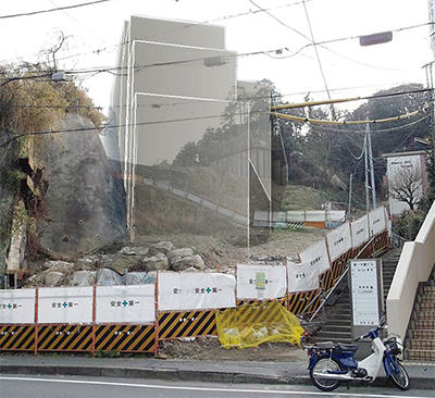 この場所に地上9階地下3階建てのマンション計画が持ち上がったのが約10年前。計画が明らかになった当初から、周辺住民は大船観音寺の目の前であることや、土地の一部が市の条例に基づく緑地保全推進地区に指定されていたことなどから、景観保護や緑地保全を求める運動を展開していた。市は2005年3月に開発行為を許可したものの同年12月、県開発審査会が「接道要件を満たさない」としてこれを取り消す処分を決定。その後、建設業者は処分取り消しを求める裁判を起こしたが、横浜地裁、東京高裁でいずれも請求が棄却され、マンション計画はとん挫した。