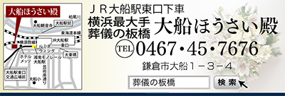 「葬儀の板橋」の本格葬儀場「大船ほうさい殿」の見学会が、7月13日(月)に開催される。時間は午前9時から午後3時。