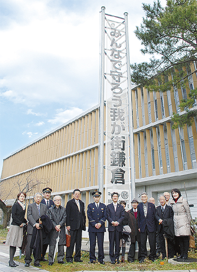鎌倉中央ロータリークラブ(藤井浩一会長)は2月17日、鎌倉警察署(山口光男署長)に「みんなで守ろう我が街鎌倉」と書かれた懸垂幕を寄贈した。