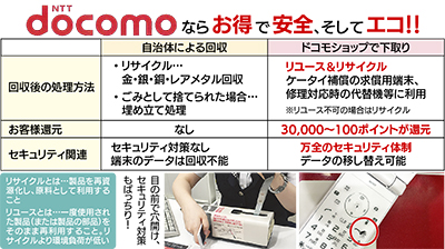 機種変更して、使わなくなった古い携帯電話やスマートフォン。個人情報のかたまりで「普通に処分するのも不安」という人も多いはず。そんなときにおススメしたいのが、ドコモショップでの「回収」と「下取り」。自治体による回収と比べ、「お得に安心」にできることが魅力だ。