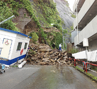 逗子市内では20日から大雨警報が断続的に発令されており、市は長雨が地盤に影響を与えた可能性があるとみている。現在土砂の撤去作業などが進められているが、復旧の見通しはたっていないという。
