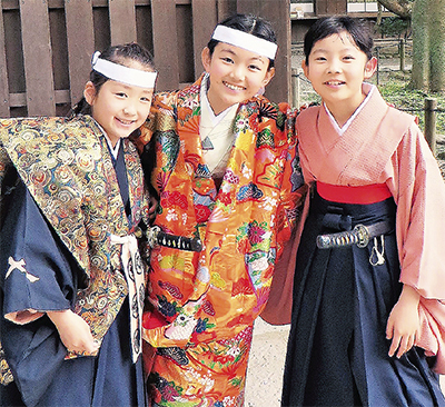 昨年、鎌倉の子どもとして初めてこの舞台に立ったのが水本あや芽さん(富士塚小5年生)だ。2年前、初めて舞台を見た水本さんは「舞や着物が格好良い」と能の世界のとりことなった。直後から伊豆の国市での練習に参加するようになり、昨年は頼朝の敵・山木兼隆役を熱演した。
