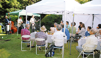 当日は住民や同施設の利用者、スタッフら約30人が参加。秋らしい日差しの下、ビールやジュースを楽しみながら歓談した。また同施設の運営推進会議の委員を務めたこともある福澤宏昭さんが所属するジャズバンド「ザ・サーフサイド・ストンプ」が登場し、軽快な演奏を披露した。