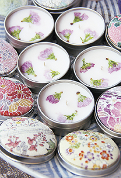 チャリティーショップ「すみれ堂」(山ノ内380の3)では、桜の押し花を使用したアロマキャンドルを販売している。キャンドル作家・山田亜希子さんの手作りで、桜の香りを楽しめるほか、火を焚いても花は燃えずに残る工夫がされている。税込1500円。