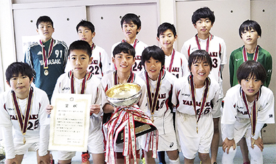 山崎の中川栄太監督は「小6にとっては最後の大会。優勝できて嬉しい」、中込会長は「悪天候の中、皆よく頑張ってくれた」と労っていた。