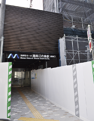 駅舎の改修工事が進められている湘南江の島駅(藤沢市片瀬3の15の1)では、エレベーターの供用が始まった。
