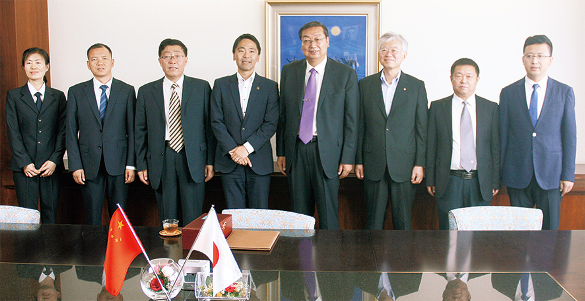鎌倉市との友好都市提携から今年で20周年を迎える中国・敦煌(とんこう)市からの訪問団6人が6月25日、市役所の庁議室で松尾崇市長を表敬訪問した。