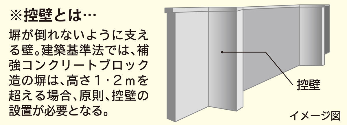 市は市立小中学校(全25校)を含む市有地内で「コンクリートブロック造の塀は高さ1・2mを超える場合、原則、控壁(※)が必要」など、建築基準法に適合しているかについて、目視による現地調査を行った。