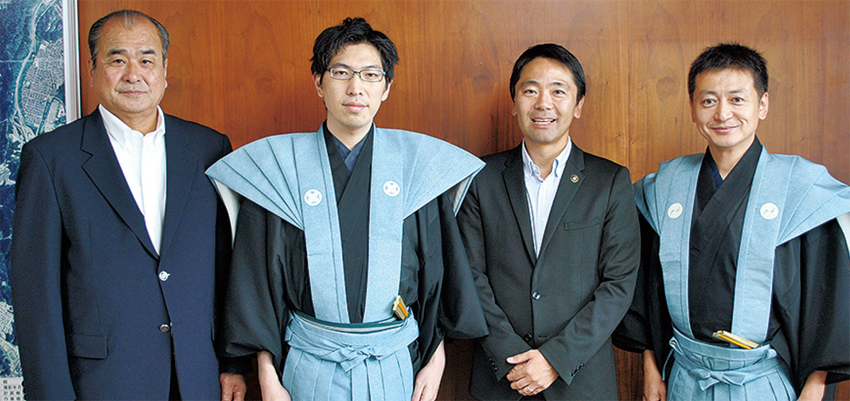 鎌倉薪能の開催を前に、同公演に出演する金春流81世宗家の金春憲和さん(36)と同流派の能楽師で総合プロデュースを務める山井綱雄さん(45)が9月18日、松尾崇市長を表敬訪問した。