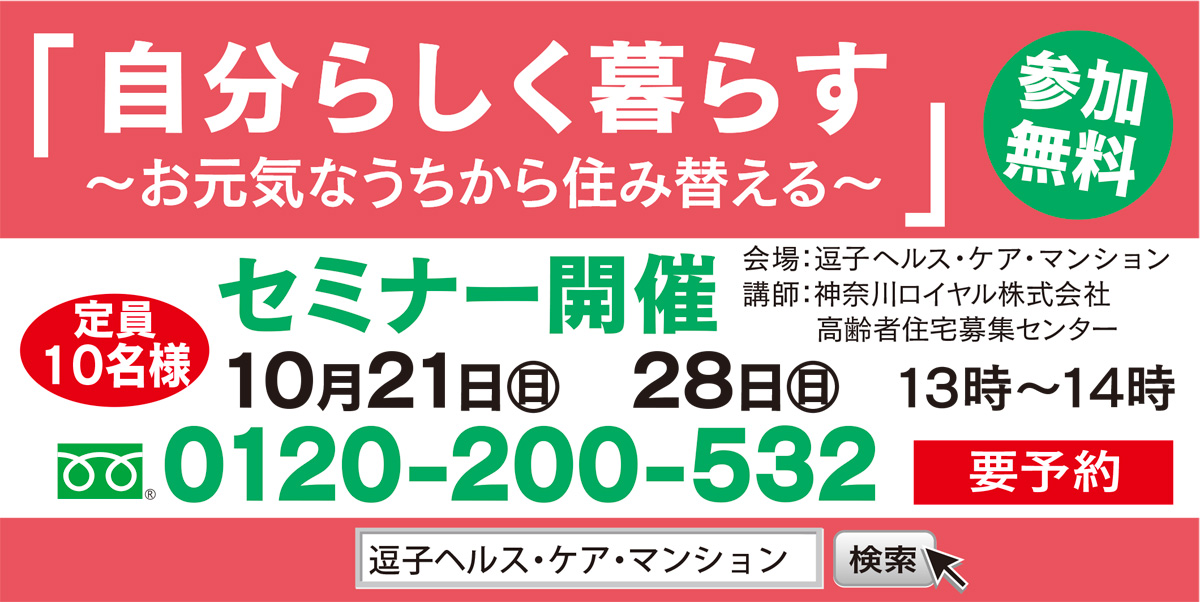10/20〜28秋の見学会開催 逗子ヘルス・ケア・マンション