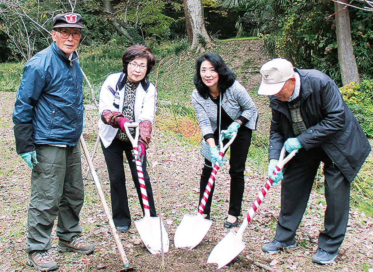 「かまくら桜の会」(高柳英麿会長)は11月19日、国指定史跡の永福寺跡(二階堂)で桜の苗木3本を植樹した。