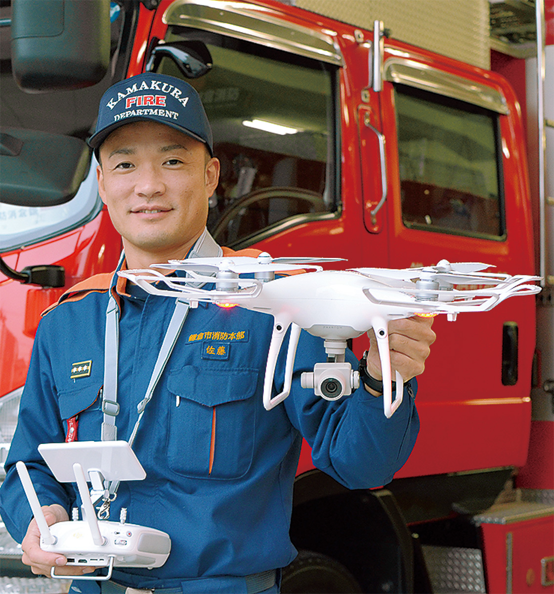 ドローンの導入は、神奈川県では鎌倉市が6例目。熊本地震や西日本豪雨、各地の火災現場で、情報収集や要救助者の捜索などに活用されており、活動に有効という声が多いことから市でも導入を決めたという。