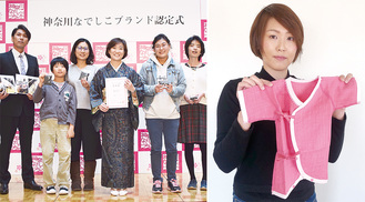 女性が開発に貢献した優れた商品やサービスを県が認定する「神奈川なでしこブランド2019」がこのほど発表され、2月3日には横浜市内で認定式が行われた。市内からは谷山綾子さん(七里ガ浜東在住)が開発した低出生体重児用肌着が認定を受けたほか、料理研究家の矢野ふき子さん(岡本在住)が進める「鎌倉海藻飼料の開発と活用」が、今後の商品化が期待される「なでしこの芽」に選ばれた。