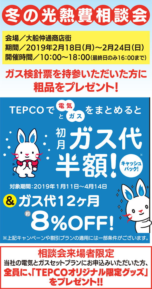 暖房などで光熱費が上がるといわれるこの季節。ガスや電気の料金を節約する方法を知ってもらおうというキャンペーンが、大船仲通商店街で2月18日(月)から2月24日(日)まで実施される。
