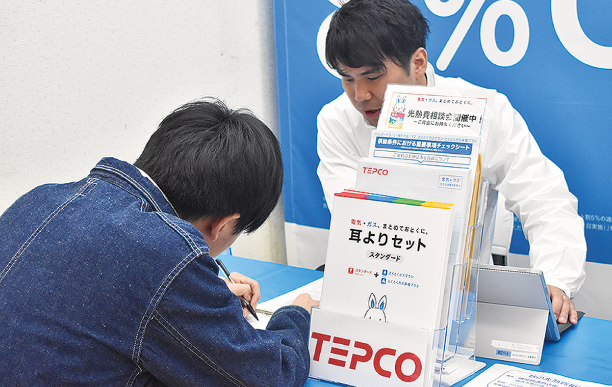 これは東京電力エナジーパートナー(株)リビング事業本部南関東支店が主催するもの。商店街内の特設ブースで1分程度の簡単なアンケートに答えるだけで、毎月の電気やガス料金を試算。その上で、光熱費が最も割安となるベストプランを提案してもらえる。また提案内容に満足した場合は即時申込みもできる上、この相談会参加者が診断結果に基づきプラン申し込みを行えば、オリジナルグッズが進呈される。