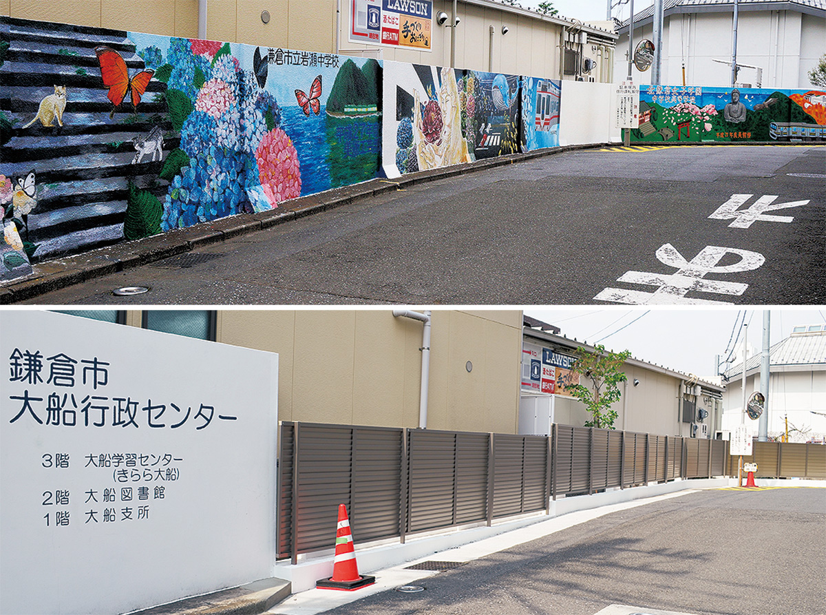 鎌倉市大船行政センター敷地内のブロック塀が安全対策のため、フェンスへと変更された。撤去されたブロック塀には、地元の学生が壁画を描き、利用者の目を楽しませていたため、惜しむ声が上がっている。大船支所では、センター内に作品を写真として展示しようと現在準備を進めている。
