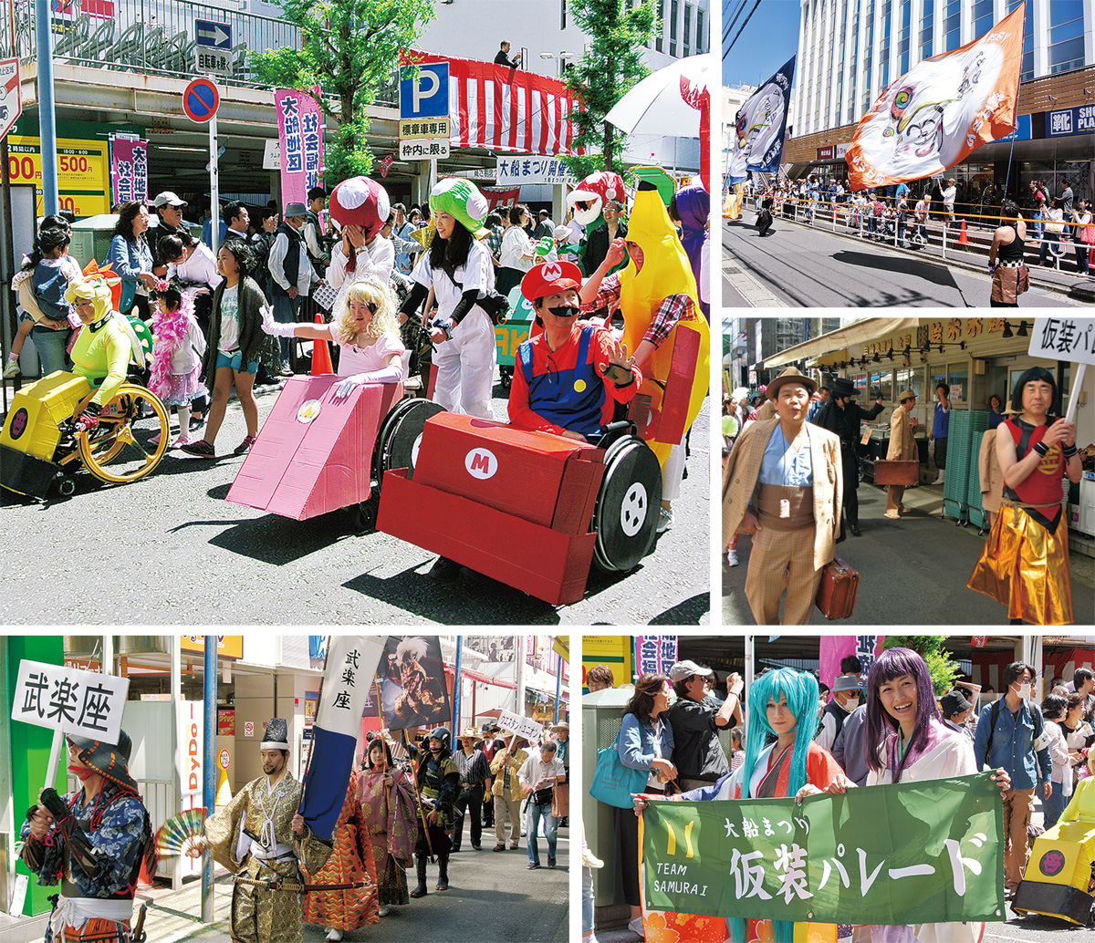 当日は、鎌倉女子大学中高部によるマーチングバンドや和太鼓彩の演奏、現在深沢で公演中のポップサーカスによるパフォーマンス、フリーマーケットが開かれるほか、地元の飲食店や団体などが多数の模擬店を出店。また、目玉イベントの一つとなった仮装パレードには、来年の東京五輪・パラリンピック大会を控えていることから、「障害のある人にも優しい祭りに」と車いすユーザーなどハンディキャップがある人も昨年に引き続き参加する。さらに鎌倉芸術館では共催企画として、「大船あの日あの頃」と題した写真展や落語公演、神奈川県警察音楽隊によるスペシャルコンサートなども行われる。入場無料。