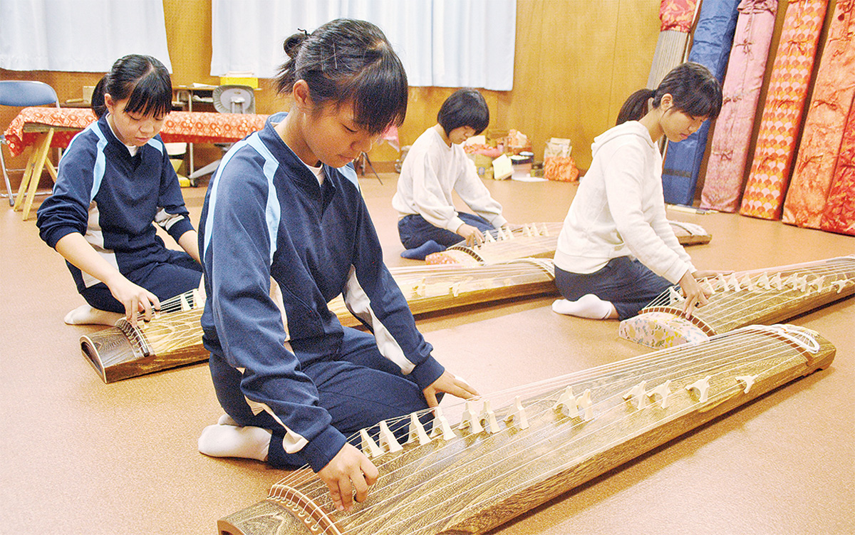 現在、同部には16人の部員が所属し、市内の高齢者施設や祭り、イベントなどで演奏を披露している。ほとんど中学に入学してから初めて箏に触れる生徒ばかりだが、楢原礼美副部長(2年)は「音の響きや余韻が独特で、弾いていて気持ち良い」と魅力を語る。