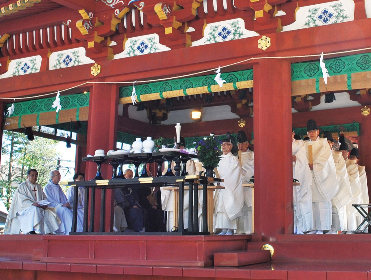 市内を拠点に神道、仏教、キリスト教の宗教関係者者などで組織する鎌倉宗教者会議(会長・吉田茂穂鶴岡八幡宮宮司)は3月11日、10回目となる東日本大震災追悼・復興祈願祭を鶴岡八幡宮で執り行った。