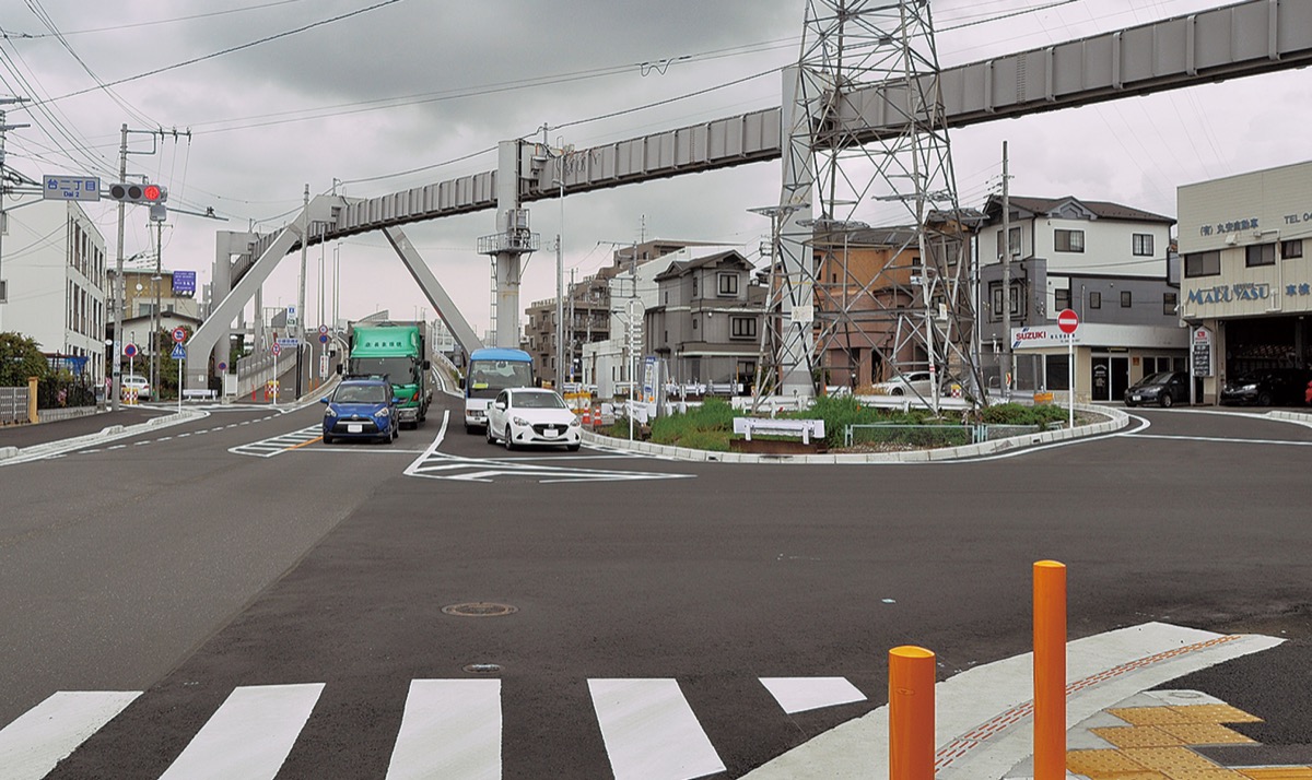 14年3月には仮橋による暫定通行を開始。その後、跨線橋の撤去や武道館側交差点の設置工事、17年6月には、以前の跨線橋と比べ車道が約1・2倍(7・5m)の道幅となる新橋が完成した。大船消防署前(大船3丁目交差点)から鎌倉武道館前へと車道がつながり、北側歩道も通行できるようになった。