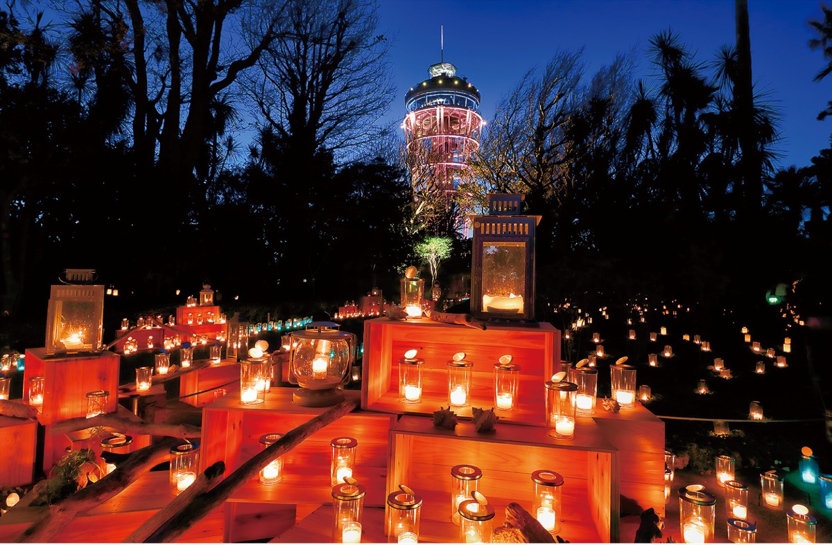 江の島の夜をろうそくの柔らかな光が彩る「湘南Candle2020」が江の島サムエル・コッキング苑(入場有料)で10月17日(土)から開かれる。11月8日(日)まで。