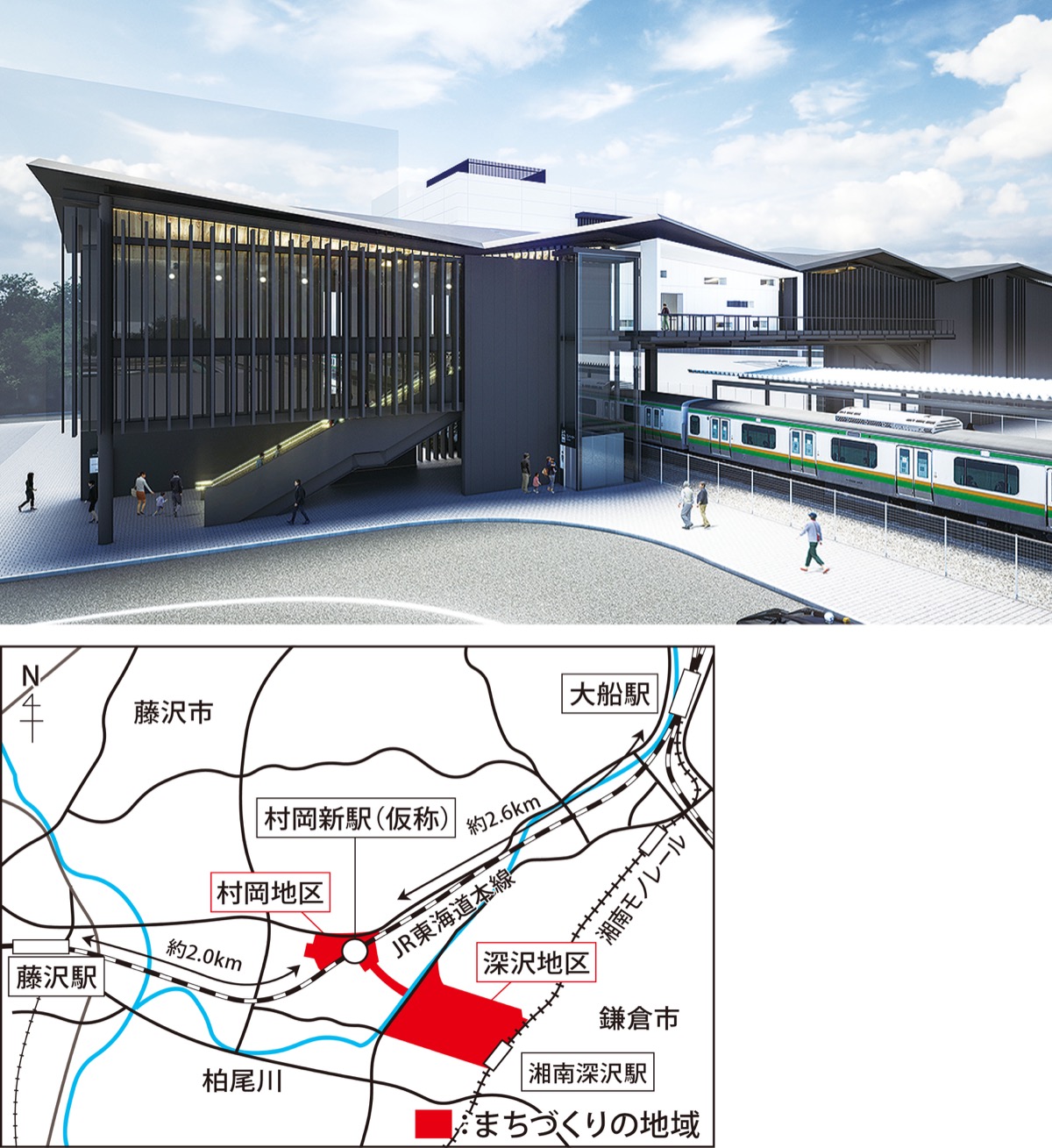 新駅周辺では、深沢地区(31・1ha)と藤沢市の村岡地区(8・6ha)を道路や橋で繋ぎ、一体的なまちづくりを進める予定となっている。