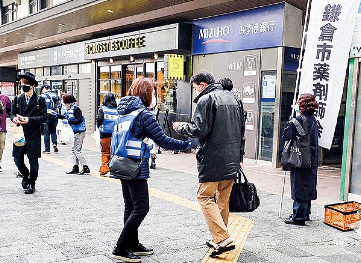 鎌倉市薬剤師会(金林茂会長)は2月14日、市内で手指消毒の啓発活動を行った。