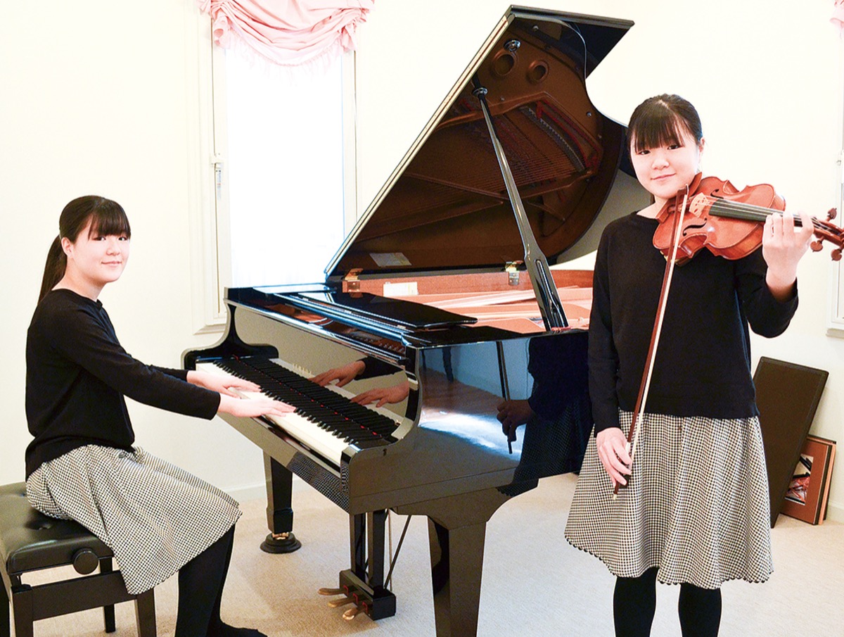 2人は、3歳でピアノを始め、続いてバイオリンにも挑戦。小学校に上がる前には、麻央さんはピアノ、梨央さんはバイオリンを「自然と」選び、練習するようになった。市内の教室で2人を幼い頃から指導してきた竹内玲子さんは「2人とも豊かでのびのびとした演奏ができる。将来が楽しみ」と話す。