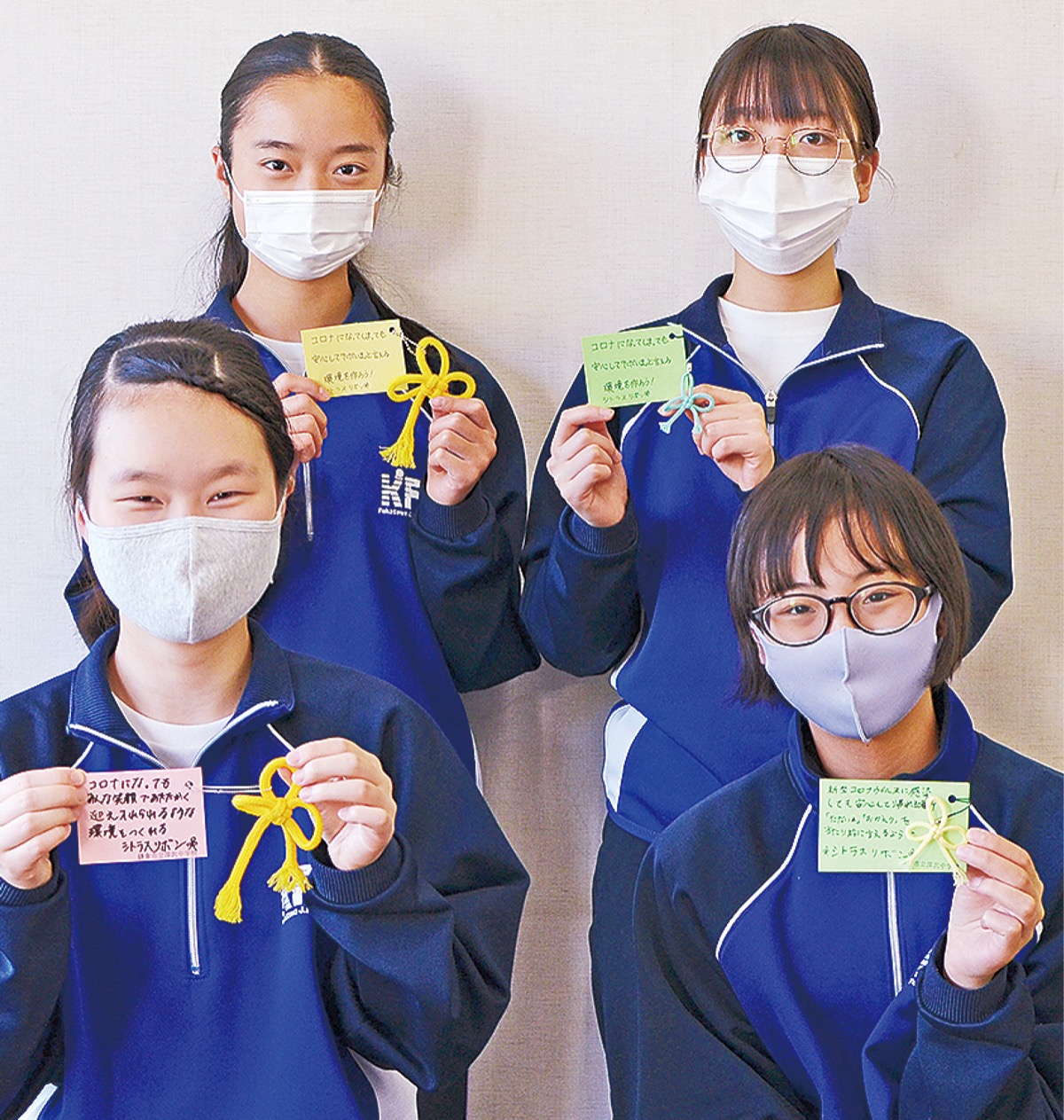 「感染した人を笑顔で迎えられるような環境を鎌倉でもつくっていけたら。学校から地域へ広げていきたい」と話すのは、田中洋子部長(3年)。出来上がったリボンは、活動を紹介する案内とメッセージをセットにし、家庭部の部員らが中心となって地域の高齢者施設などに配布してきた。部員以外にも「地域の人に渡したい」と自ら50個ほどのリボンを配った生徒もいたという。