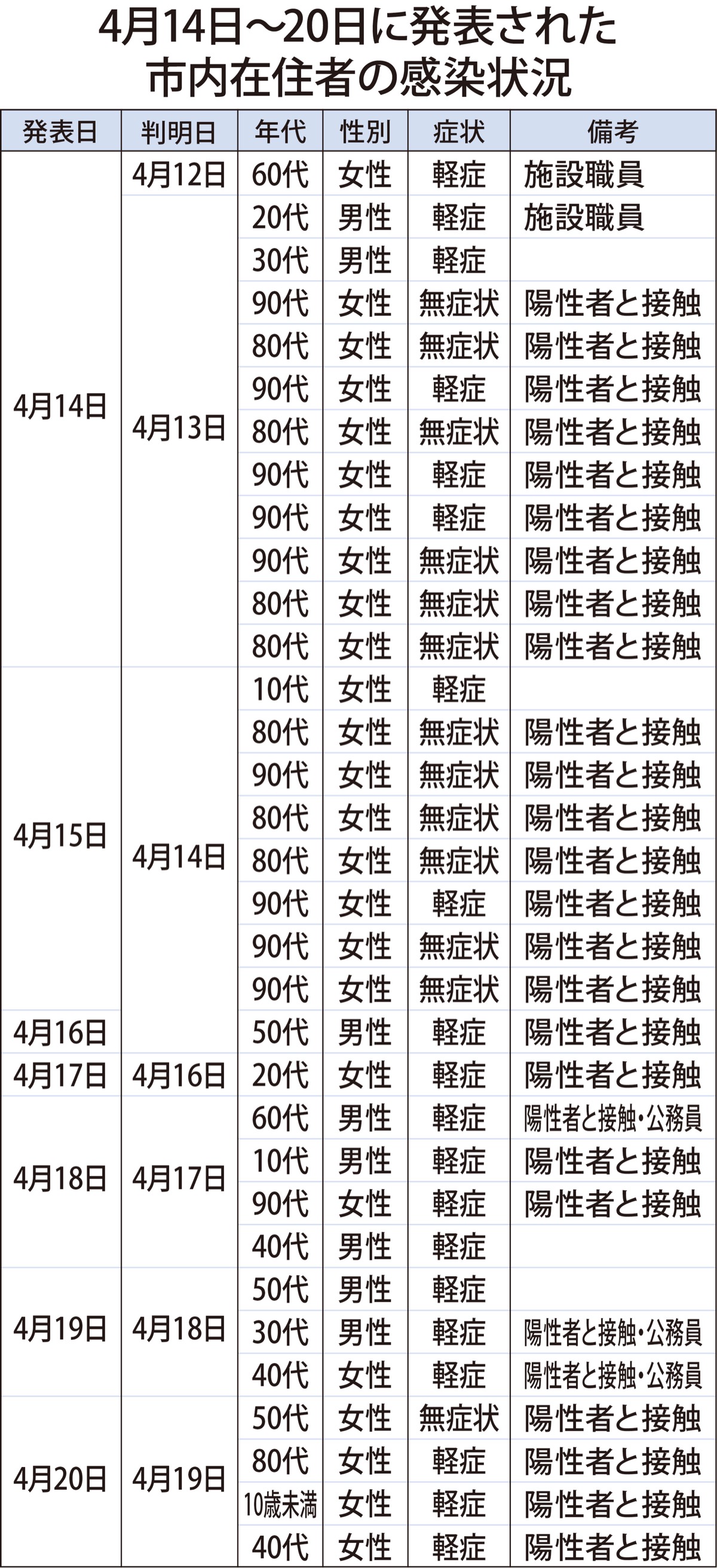 クラスターとなった高齢者施設の市町は発表されていないが、鎌倉市内在住の80代・90代の陽性判明者は14日から20日だけで18人、クラスター認定前だった4月7日から13日まで(本紙4月16日号掲載)の人数と合わせると25人となる。