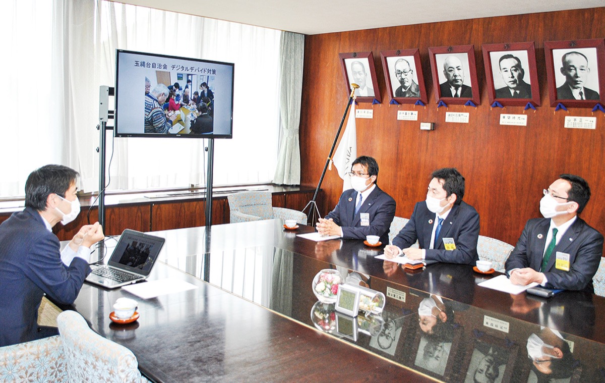 坂倉会長は「地域の課題解決へご指導をいただきたい」とあいさつ。松尾崇市長から鎌倉市が進める「共創」の取り組みについて映像なども交えながら説明を受け「規制緩和も含めた深沢のまちづくりや未病、災害対策に取り組む必要があると考えている」と県に対する要望を聞き取った。