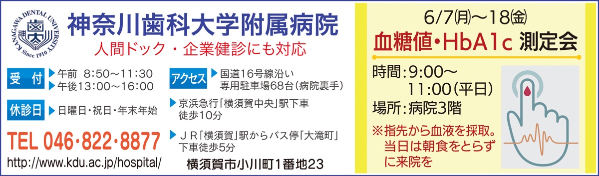 神奈川歯科大学附属病院では、糖尿病の有無や現在の状態を把握できる「血糖値・HbA1c測定会」を開く。指先から血液を採取するだけの簡単な検査で健康状態がわかる。同院糖尿病・内分泌内科の青木一孝医師=写真=は「糖尿病の早期発見や予防に役立てて欲しい」と話している。