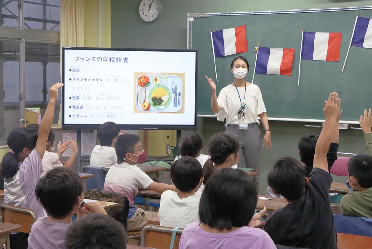 東京五輪開幕を前に、フランスのホストタウンのひとつでセーリング代表チームの事前キャンプ地の鎌倉市は、子どもたちが同国の文化に触れる授業と給食を実施した。