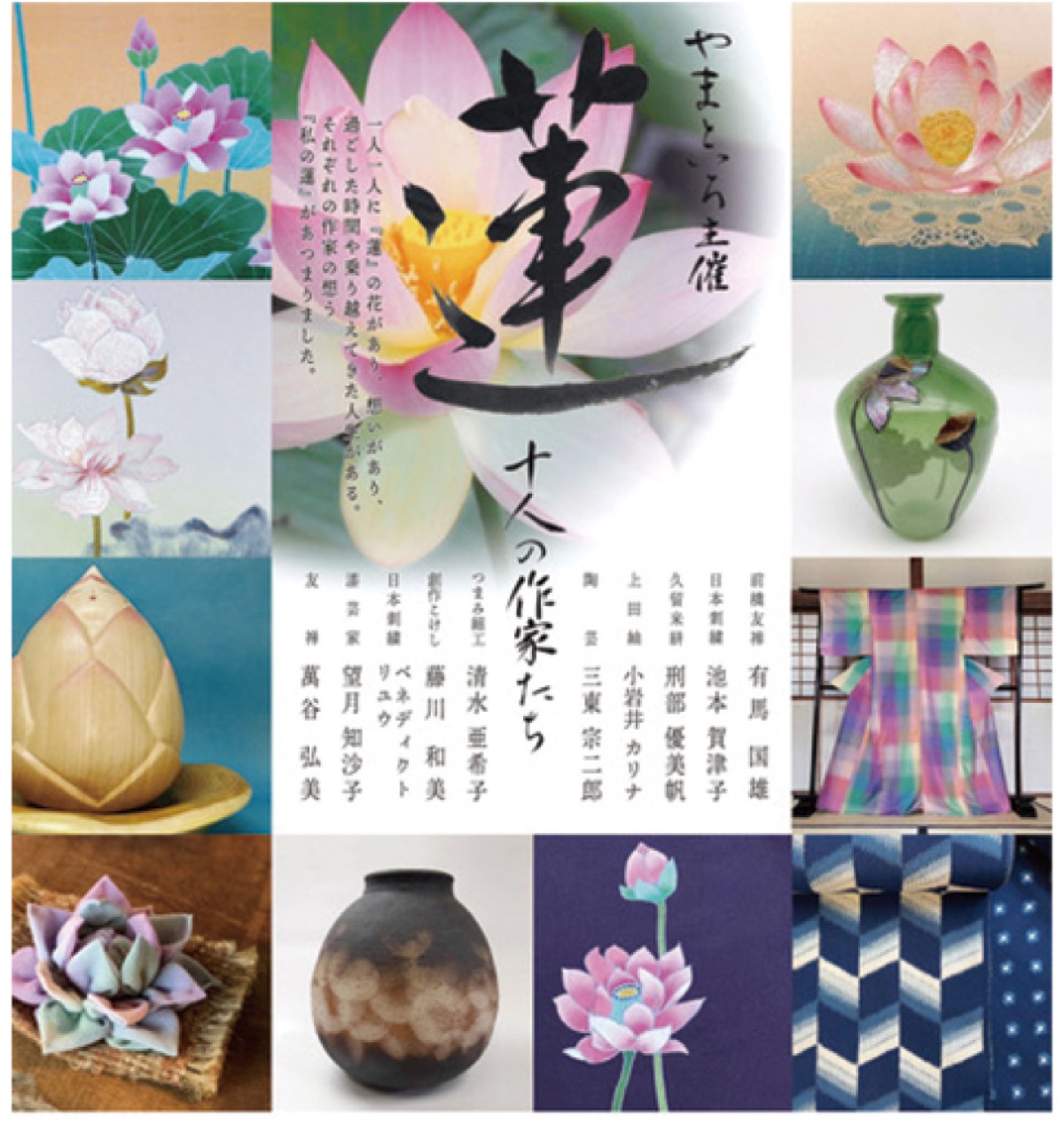 北鎌倉駅近くのギャラリーえにし(山ノ内1347)で8月7日(土)から11日(水)まで、グループ展「蓮〜十人の作家たち〜」が開催される。やまといろ主催。