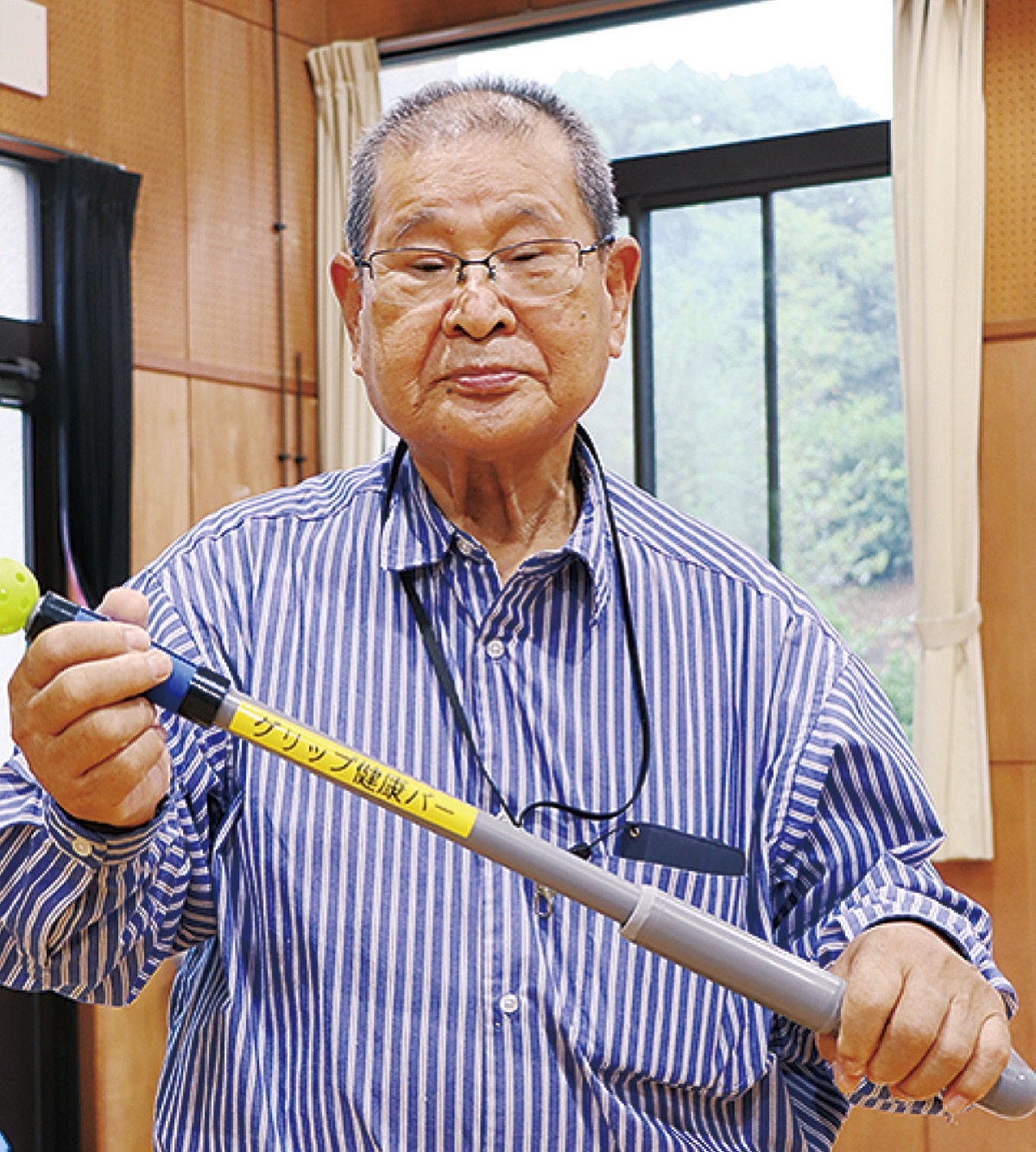 市内今泉在住の清水直道さん(84)が開発し特許を取得した器具「グリップ健康バー」が、高齢者たちの間で好評を博している。「人生100年時代を楽しむために」と清水さんが考案した1本の棒は、リハビリ、運動、マッサージにも活用できる代物だ。