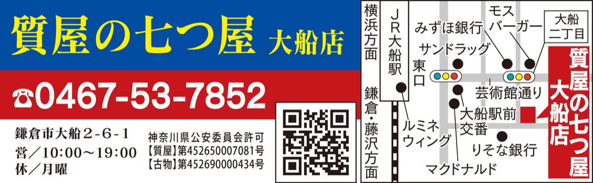 9月に開店したばかりの大船駅東口徒歩3分の「質屋の七つ屋」に、少しずつではあるが相談に来店者が訪れている。「大事にしてきたものを適正価格で査定してくれる」、「女性スタッフの接客が丁寧」といった声が寄せられている。