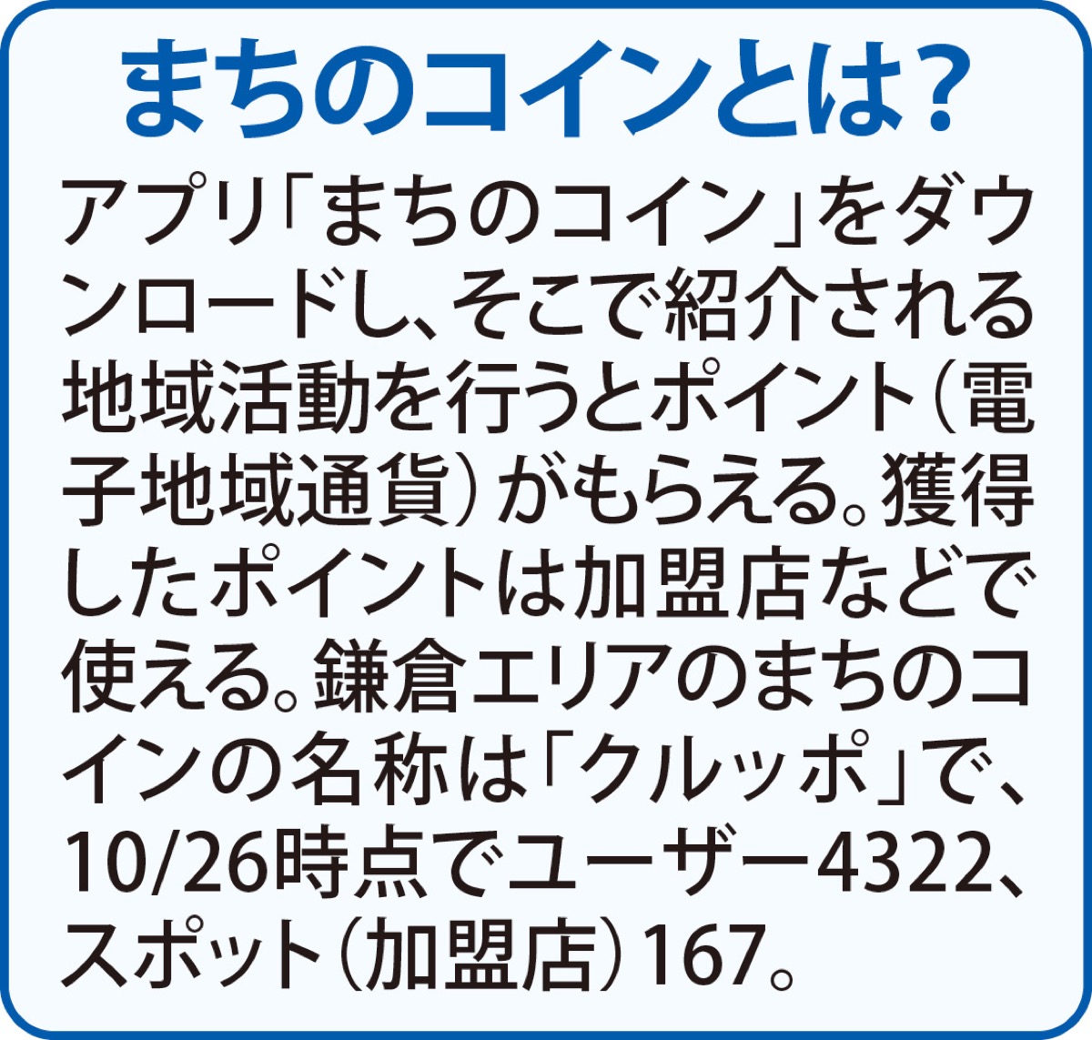 (株)カヤック(本社/御成町)が開発し、今年1月から鎌倉市内で導入された電子地域通貨サービス「まちのコイン」を活用したイベントが、10月31日(日)に鎌倉駅西口周辺で開催される。10月の食品ロス削減月間に合わせ、取り組みに協力した際に獲得できるポイントによって会場で体験が楽しめるなど、イベントを通じて人々の交流を促進していく。